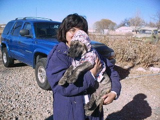 Here I am, 8 weeks old, going home with my new family! Check out my new jacket! |